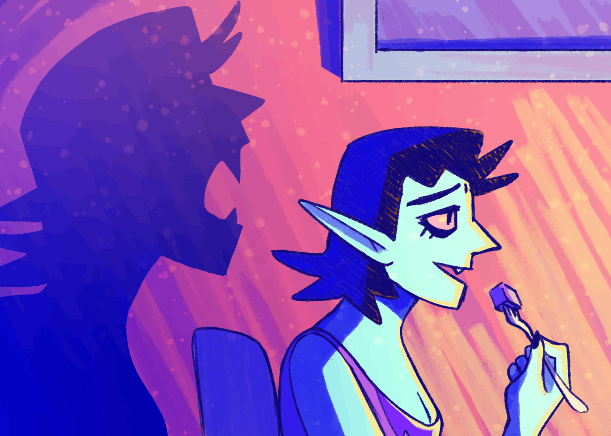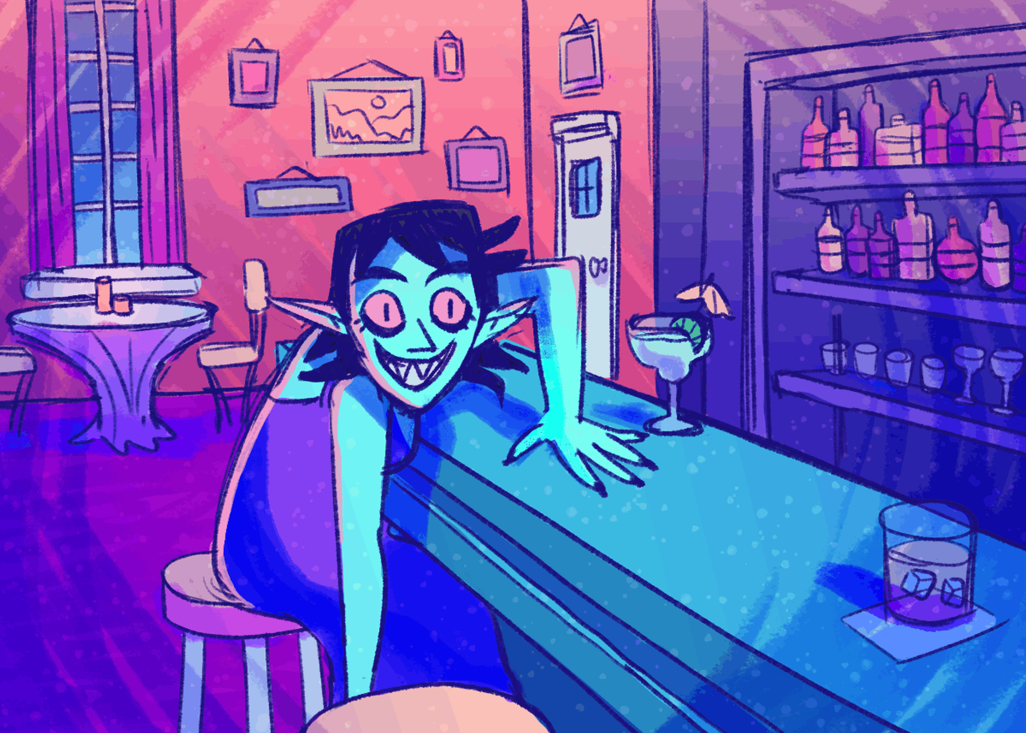 Comic Illustration THIS GIRL SUCKS An upcoming comic about a vampire going on a blind date. concept art character design